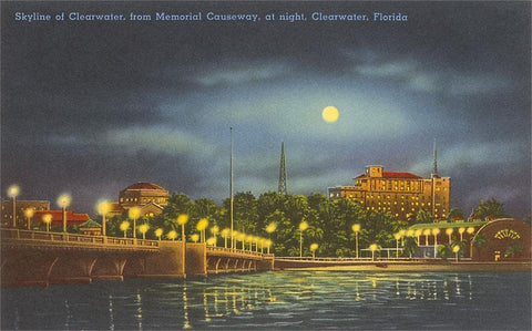FL-419 Moon over Clearwater, Florida - Vintage Image