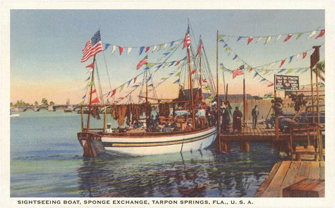 FL-1041 Boat, Sponge Exchange, Tarpon Springs, Florida - Vintage Image