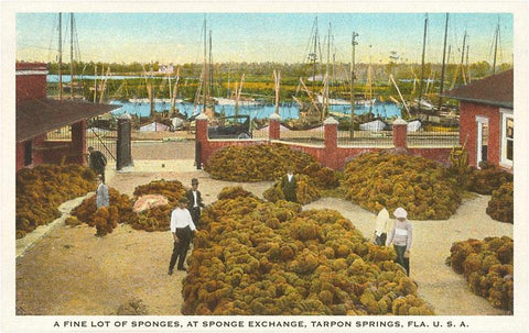 FL-1042 Piles of Sponges, Tarpon Springs, Florida - Vintage Image