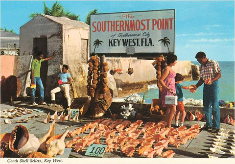 FL-1159 Buying Conch Shells in Key West, Florida - Vintage Image