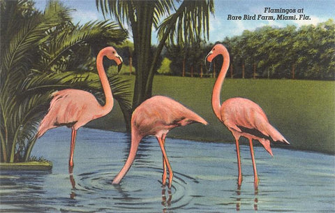 FL-1324 Flamingos, Rare Bird Farm, Miami - Vintage Image
