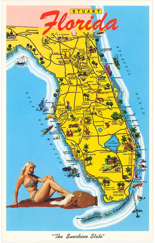 FL-1338 Map with Florida Attractions - Vintage Image
