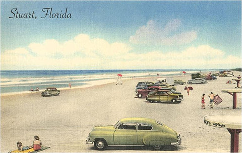FL-1339 Cars on Beach, Stuart, Florida - Vintage Image