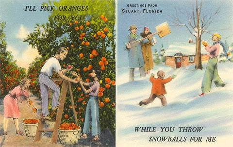 FL-1340 Oranges versus Snowballs, Stuart, Florida - Vintage Image