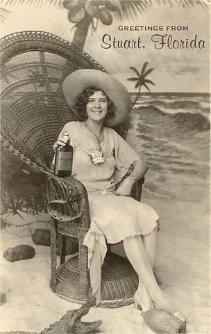 FL-1434 Woman Sitting on Chair at the Beach, Stuart, Florida - Vintage Image