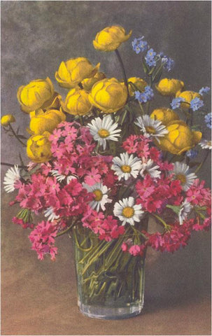 FC-108 Bouquet of Flowers in Water Glass - Vintage Image