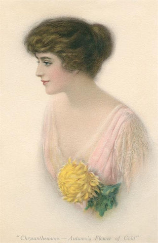 FC-188 Delicate Woman with Yellow Chrysanthemum - Vintage Image