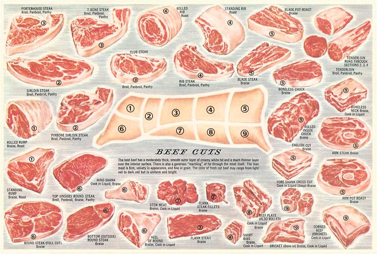 FO-138 Cuts of Beef Chart - Vintage Image