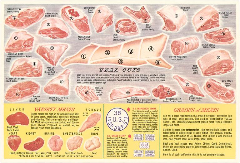 FO-139 Veal Cuts Chart - Vintage Image