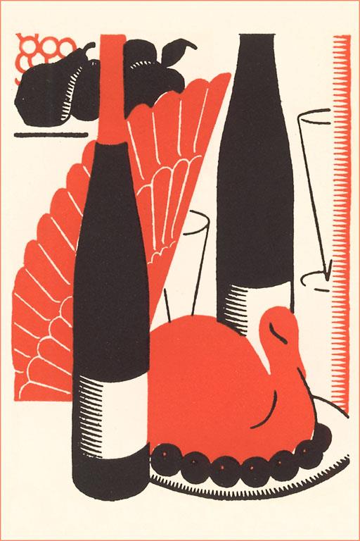 FO-304 Wine and Turkey - Vintage Image