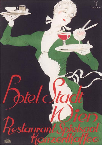 FO-712 Austrian Waitress with Plates - Vintage Image