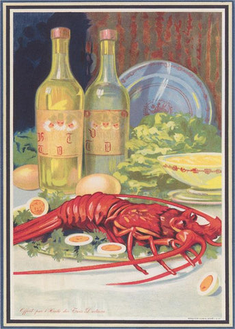 FO-717 Wine and Lobster - Vintage Image
