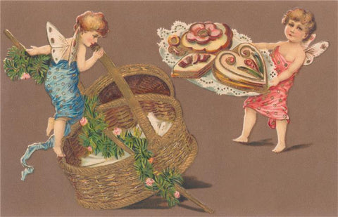 FO-747 Two Cherubs with Sweets - Vintage Image