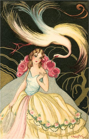 FG-102 Crane Visiting Bored Woman - Vintage Image
