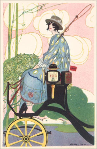 FG-112 Forlorn Woman Driving Hansom Cab - Vintage Image
