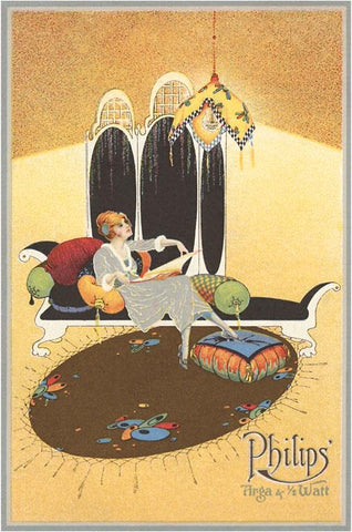 FG-231 Woman on Chaise Admiring Lamp - Vintage Image