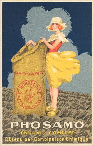 FG-241 Fashionable Peasant Girl with Bag of Fertilizer - Vintage Image