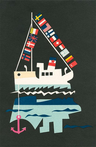 FG-344 Abstract Ship with European Flags - Vintage Image