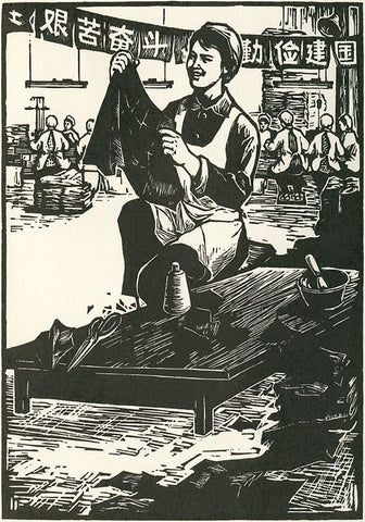 FG-351 Chinese Worker Cutting Cloth - Vintage Image