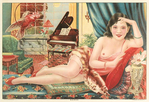 FG-427 Semi-Nude Asian Woman with Gallah - Vintage Image