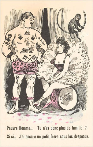 FG-510 French Cartoon with Dancer and Strongman - Vintage Image