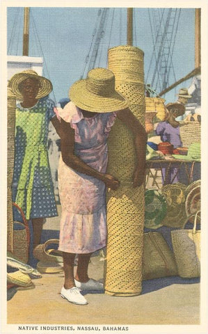 MF-77 Woman with Hand-Woven Mat, Nassau, Bahamas - Vintage Image