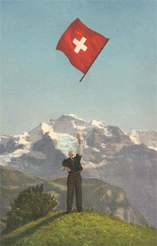 MF-294 Swiss Flag Above Alps - Vintage Image