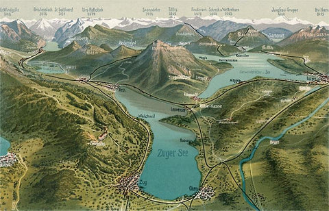 MF-379 Map of Swiss Alps with Lakes - Vintage Image