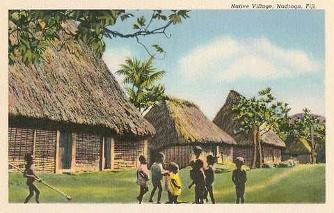 MF-415 Native Village, Nodroga, Fiji - Vintage Image