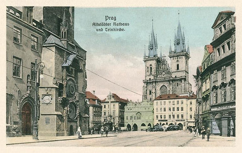 MF-416 Teinkirche and City Hall, Prague, Czech Republic - Vintage Image