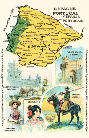 MF-703 Map of Spain and Portugal - Vintage Image