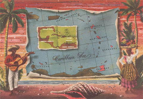 MF-912 Map of Caribbean, Guitarist - Vintage Image