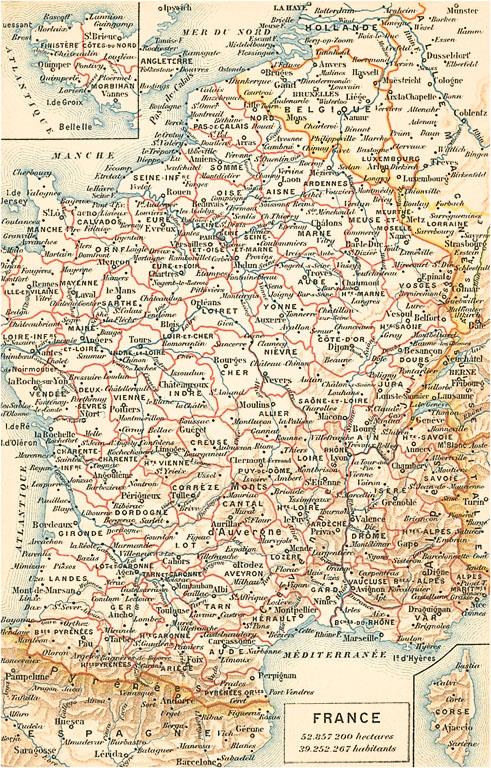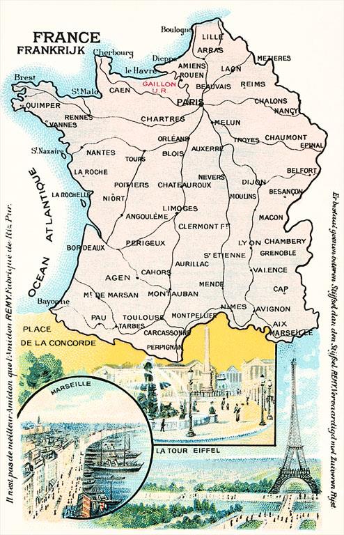 FF-253 Map of France - Vintage Image