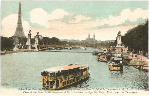 FF-01 Seine, Eiffel Tower, Paris, France - Vintage Image