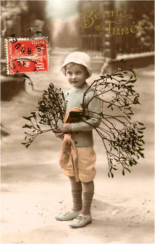 FE-02 Bonne Annee, Boy with Branches - Vintage Image