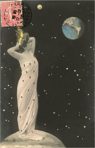 FE-23 Woman with Crown on Moon, Watching Earth - Vintage Image