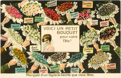 FE-27 Birthday Wishes with Names and Flowers - Vintage Image
