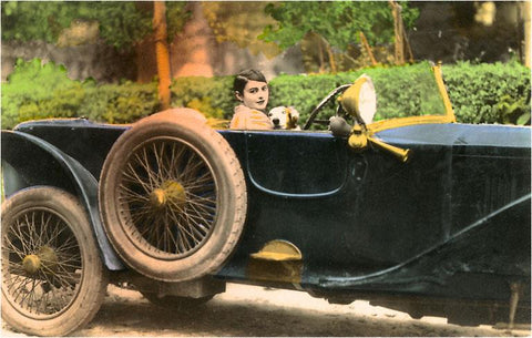 FE-44 Girl and Dog in Car - Vintage Image