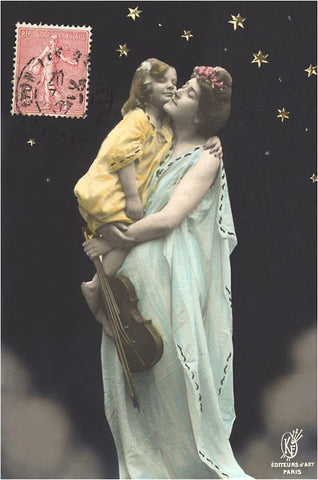 FE-77 Mother, Daughter, Violin - Vintage Image