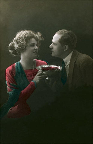 FE-84 Intense Couple with Bowl of Cherries - Vintage Image