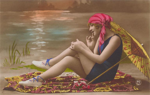 FE-123 Bathing Beauty with Parasol - Vintage Image