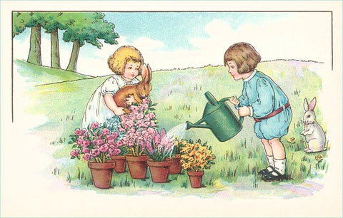GD-78 Little Girls with Flower Pots - Vintage Image