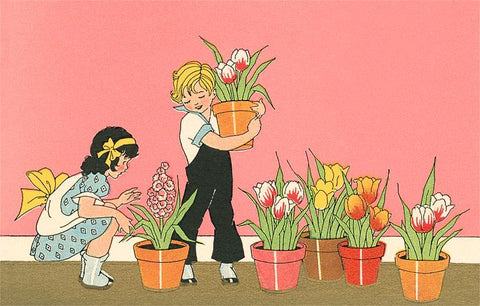 GD-93 Children with Flowerpots - Vintage Image