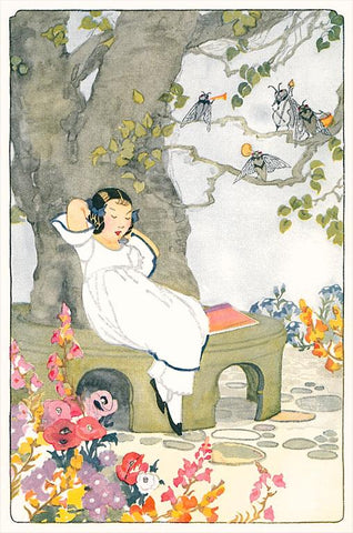 GD-96 Japanese Girl Asleep in Garden - Vintage Image