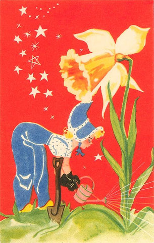 GD-100 Dutch Girl Watering Daffodil - Vintage Image