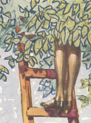 GD-173 Woman's Legs in Ladder in Tree - Vintage Image
