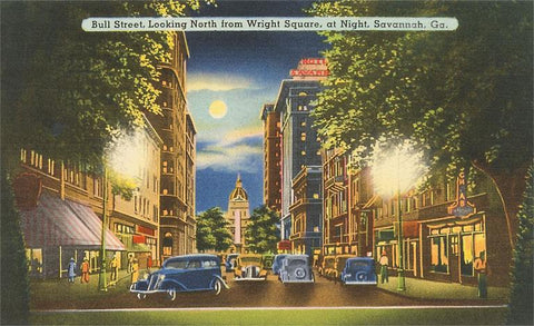 GA-237 Moon over Bull Street, Savannah - Vintage Image