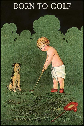 GF-79 Born to Golf, Victorian Infant Teeing Off - Vintage Image