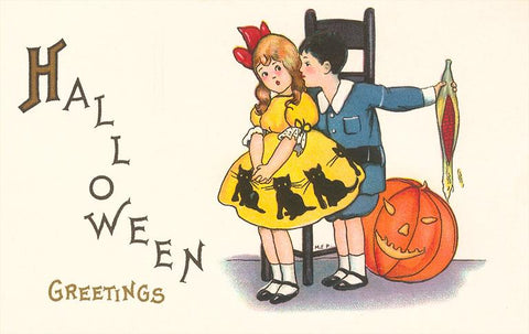 HW-32 Halloween Greetings, Children with Jack O'Lantern - Vintage Image