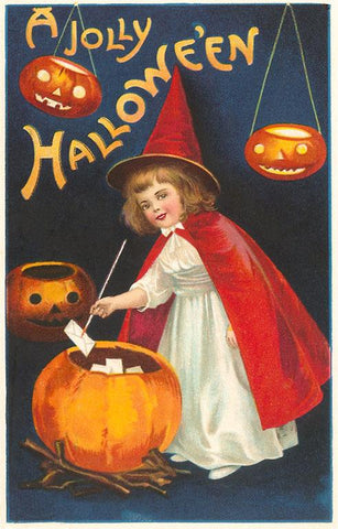 HW-40 Halloween, Little Witch with Pumpkin Cauldron - Vintage Image